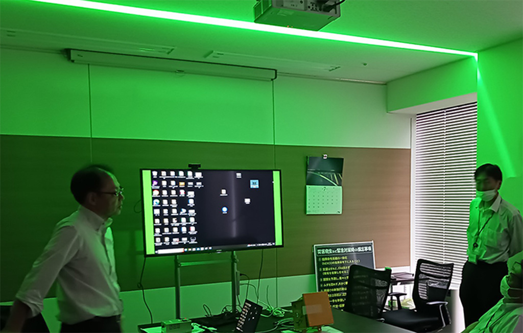 ライトの色は、人が見やすいとされている緑色を採用(国際照明委員会:比視感度曲線から)。また、LED光であることから直視することがあっても安全です。