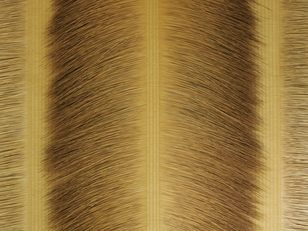 稲藁を何層にも重ねて板状にする藁畳床を、い草を編んでつくった畳表でくるみ、縫い合わせてつくります。「XT」には、これまでの畳にはなかった斜めのラインを美しく処理する技術が求められます。そこに、草新舎が手がけてきた全国200以上の国宝や重要文化財に畳をおさめた経験によって育まれた技術が、存分に活かされています。